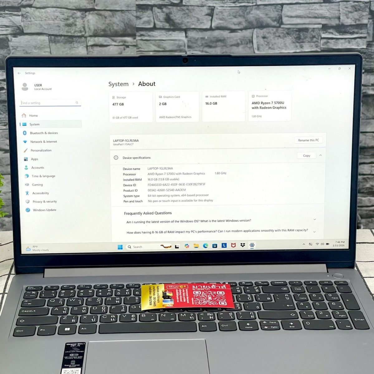 CPU : AMD Ryzen 7 5700U (1.80 GHz up to 4.30 GHz, 8 MB L3 Cache)
